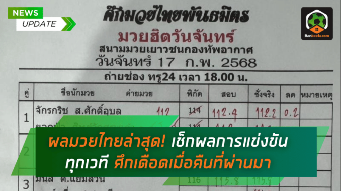 🔥 ผลมวยไทยทุกศึก อัปเดตครบจบที่นี่!