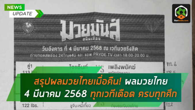 สรุปผลมวยไทย วันอังคารที่ 4 มีนาคม 2568