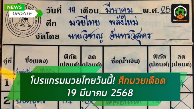 โปรแกรมมวยไทย วันพุธที่ 19 มีนาคม 2568