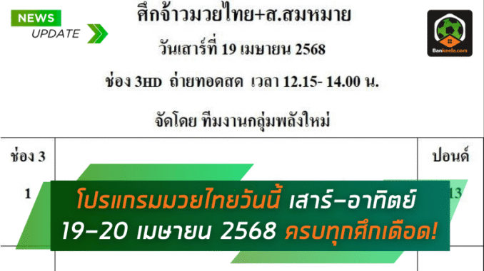 โปรแกรมมวยไทย วันเสาร์ที่ 19 เมษายน 2568