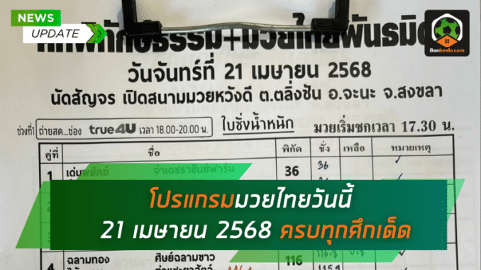 โปรแกรมมวยไทย วันจันทร์ที่ 21 เมษายน 2568