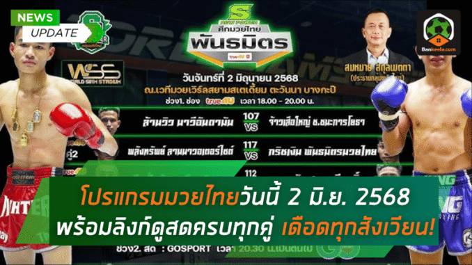 ระเบิดความมัน! โปรแกรมมวยไทยวันนี้ 2 มิ.ย. 2568 พร้อมลิงก์ดูสดครบทุกคู่ เดือดทุกสังเวียน!