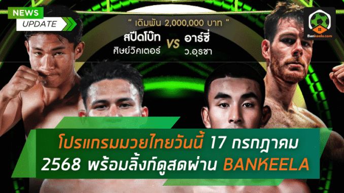 บ้านกีฬา ขอนำเสนอ โปรแกรมมวยไทยวันนี้ วันพฤหัสบดีที่ 17 กรกฎาคม 2568 อย่างเข้มข้น สำหรับคอมวยที่เฝ้ารอศึกเดือดบนสังเวียน ลุ้น ผลมวยไทย แบบเรียลไทม์ พร้อมเช็กตารางการแข่งขันแบบละเอียดทุกคู่สำคัญ ครบทุกศึกดัง ทั้ง มวยไทย 7 สี, ศึก ONE ลุมพินี, ศึกจ้าวมวยไทย ช่อง 3, ศึก RWS ราชดำเนิน เวิลด์ซีรีส์, ไทยไฟท์ และ ศึกเพชรยินดี ที่แฟนพันธุ์แท้ห้ามพลาดแม้แต่วินาทีเดียว บ้านกีฬา จัดให้พร้อม ลิ้งก์ดูมวยไทย สดคมชัดผ่าน BANKEELA ให้ติดตามได้สะใจทุกคู่ ทุกยก