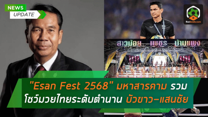 เมื่อวัฒนธรรมสายหมัดปะทะศิลปะพื้นบ้านแบบจัดเต็ม! แฟนมวยและสายวัฒนธรรมเตรียมพบกับความยิ่งใหญ่ระดับภาคอีสานในงาน “Esan Fest มหกรรมของดีอีสาน” ที่จะจัดขึ้นในวันที่ 7-9 สิงหาคม 2568 ณ อาคารพลศึกษา (ม.ใหม่) มหาวิทยาลัยมหาสารคาม จังหวัดมหาสารคาม งานนี้ถือเป็นการรวมเอาสุดยอด Soft Power ไทยทั้ง กีฬา, ศิลปวัฒนธรรม, การท่องเที่ยว และ ชุมชน เข้าไว้ในเทศกาลเดียวอย่างลงตัว และที่ไม่พูดถึงไม่ได้คือโชว์พิเศษระดับตำนาน ดูมวยไทย จาก “บัวขาว บัญชาเมฆ” และ “แสนชัย พี.เค.แสนชัยมวยไทยยิม” ที่จะพาแฟนหมัดไทยเข้าสู่จิตวิญญาณแห่งการไหว้ครูแบบต้นฉบับ พร้อมชกจริงบนเวทีมวยไทยอาชีพแบบเดือด ๆ ใจกลางมหาวิทยาลัย