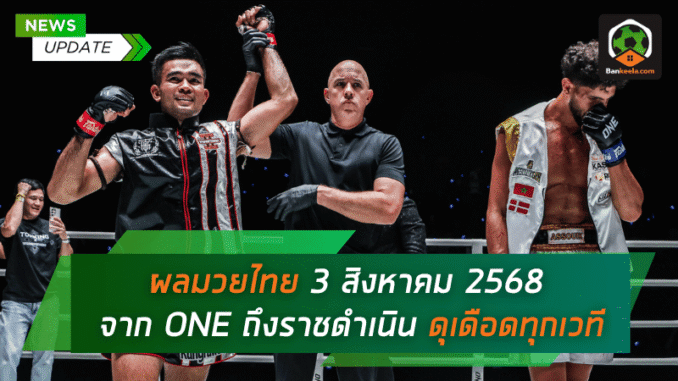 คอมวยห้ามพลาด! บ้านกีฬา ขอพาทุกท่านเจาะลึก ผลมวยไทย ประจำวันที่ วันเสาร์ที่ 3 สิงหาคม 2568 ที่ผ่านมา กับการสรุปครบทุกสังเวียน ทั้ง ONE Fight Night, ศึกจ้าวมวยไทย, PPTV เกียรติเพชร, ศึกจิตรเมืองนนท์ และ ราชดำเนิน เวิลด์ ซีรีส์ (RWS) จัดเต็มแบบละเอียดยิบให้แฟน ๆ ได้ ดูมวยไทย และติดตาม ผลมวยไทย อย่างจุใจผ่าน BANKEELA