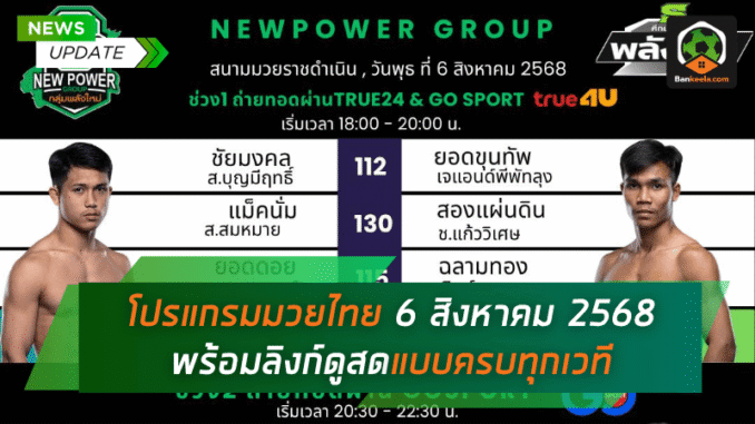 🔴 โปรแกรมมวยไทยวันนี้ วันพุธที่ 6 สิงหาคม 2568