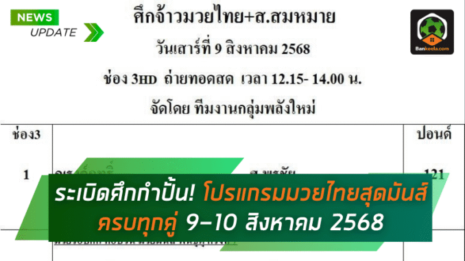 📅 โปรแกรมมวยไทย วันอาทิตย์ที่ 10 สิงหาคม 2568
