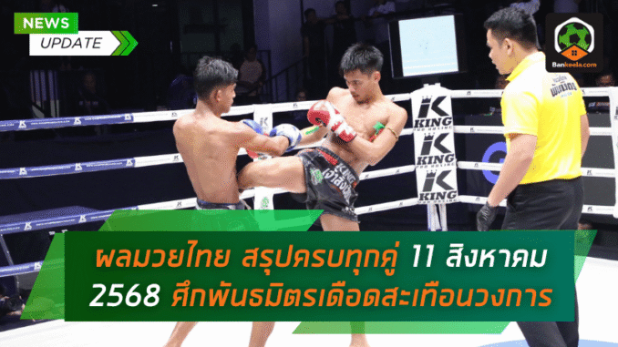 แฟนมวยไทยห้ามพลาด! เรารวบรวม ผลมวยไทย ครบทุกคู่จากค่ำคืนมันส์สะท้านเวทีเมื่อวันที่ 11 สิงหาคม 2568 ให้คุณได้เช็กกันแบบละเอียด ไม่ว่าจะเป็นผลจาก ศึกมวยไทยพันธมิตร, มวยไทย 7 สี, ศึกจ้าวมวยไทย, ศึกเพชรยินดี, ราชดำเนิน เวิลด์ซีรี่ส์ ไปจนถึงเวทีดังทั่วประเทศ ใครที่พลาดการรับชมสด หรืออยากดูย้อนหลังผ่าน BANKEELA นี่คือสรุปที่ครบที่สุด พร้อมบรรยากาศสุดดุเดือดจากเวที