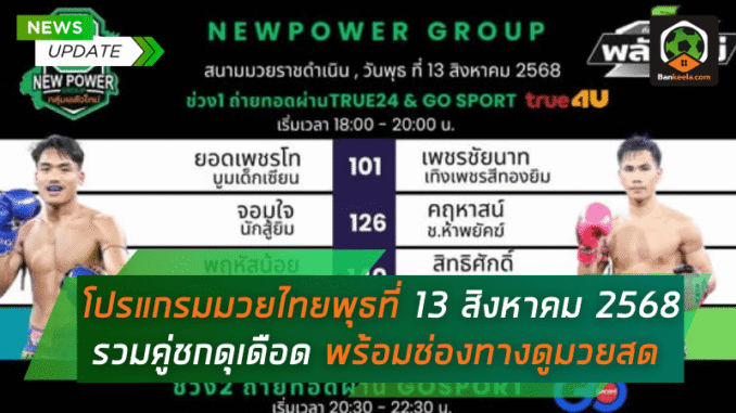 โปรแกรมมวยไทยเด็ดประจำวัน พุธที่ 13 สิงหาคม 2568 รวมคู่ชกดุเดือด พร้อมช่องทางดูมวยสด BANKEELA
