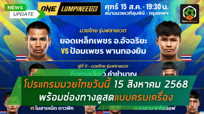 ศึกเดือด! โปรแกรมมวยไทยวันนี้ 15 สิงหาคม 2568 พร้อมช่องทางดูสดแบบครบเครื่อง