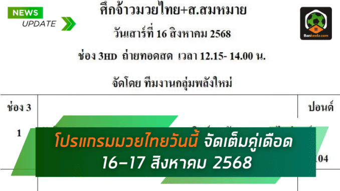 โปรแกรมมวยไทย วันเสาร์ที่ 16 สิงหาคม 2568