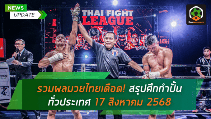 คอมวยห้ามพลาด! บ้านกีฬา จัดเต็มรวบรวม ผลมวยไทย ประจำวันอาทิตย์ที่ 17 สิงหาคม 2568 แบบครบทุกศึก ทุกเวทีดัง ใครที่พลาดการถ่ายทอดสดเมื่อคืน สามารถตามเช็กผลได้ที่นี่ทันที ไม่ว่าจะเป็น ผลมวยไทย 7 สี, ศึกมวยดีวิถีไทย, ศึกท่อน้ำไทย ทีเคโอเกียรติเพชร ไปจนถึง ไทยไฟท์ สะใจกันครบทุกคู่ พร้อมรายละเอียดการชกที่เข้มข้นเร้าใจ