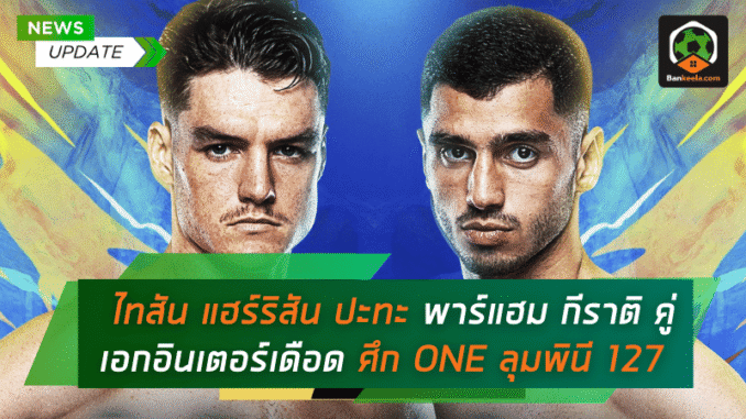 ศึก ONE ลุมพินี 127 วันศุกร์ที่ 3 ตุลาคมนี้ เตรียมระเบิดความมันส์ที่เวทีลุมพินี คู่เอกภาคอินเตอร์สุดดุเดือด “ไทสัน แฮร์ริสัน” มวยบู๊พลังระเบิด วัย 24 ปี จากออสเตรเลีย พร้อมใส่เดี่ยวกับ “พาร์แฮม กีราติ” ดาวบู๊วัย 21 ปี จากอิหร่าน ในกติกามวยไทย รุ่นแบนตัมเวต (135-145 ปอนด์) งานนี้คือศึกเดิมพันศักดิ์ศรีที่แฟน ดูมวยไทย ห้ามพลาดเด็ดขาด
