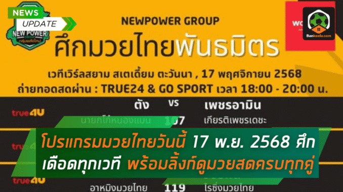 โปรแกรมมวยไทยวันนี้ (17 พฤศจิกายน 2568)