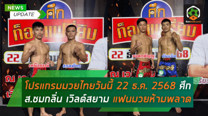 โปรแกรมมวยไทยวันนี้ 22 ธ.ค. 2568 ศึก ส.ชมกลิ่น เวิลด์สยาม เดือดทุกคู่แฟนมวยห้ามพลาด