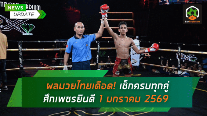 ค่ำคืนวันพฤหัสบดีที่ 1 มกราคม 2569 เป็นอีกหนึ่งวันที่คนรักมวยนั่งติดขอบจอ ลุ้นทุกยกไปกับบรรยากาศเช็กผลมวยจากหลายเวทีดังทั่วประเทศ ตั้งแต่รายการถ่ายทอดสดช่วงหัวค่ำยาวไปถึงคู่ดึก ใครที่พลาดชมสด ไม่ต้องกังวล บ้านกีฬาเก็บผลชกเอาไว้ให้ครบ ทั้งชนะน็อก ชนะคะแนน และคู่ที่ออกมาสูสีแบบต้องลุ้นจนเสียงระฆังสุดท้าย