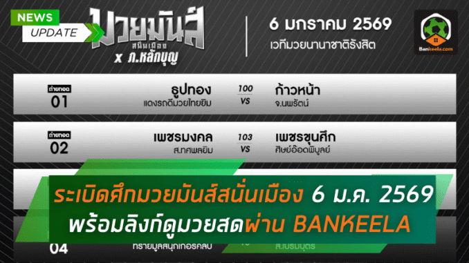 ระเบิดศึกมวยมันส์สนั่นเมือง 6 ม.ค. 2569 จากรังสิต พร้อมลิงก์ดูมวยสดผ่าน BANKEELA แฟนมวยไทยห้ามกระพริบตา