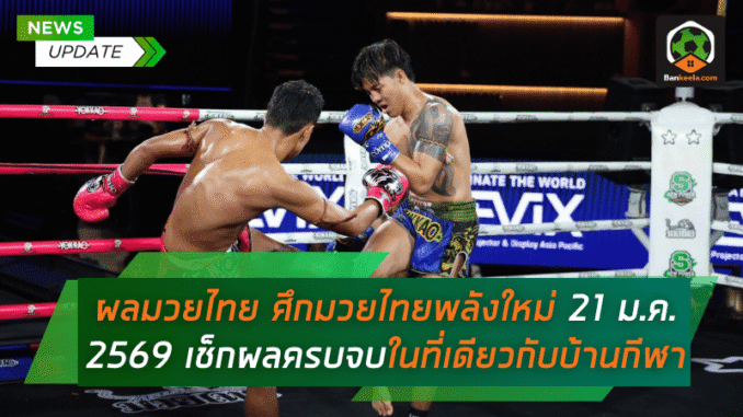 - ศึกมวยไทยพลังใหม่ ในค่ำคืนวันพุธที่ 21 มกราคม 2569 ถือเป็นอีกหนึ่งรายการที่อัดแน่นไปด้วยคู่มวยที่รูปเกมสูสี มีทั้งผลชนะคะแนน ชนะน็อก และคู่ที่ต้องยกเลิกการชกกลางโปรแกรม