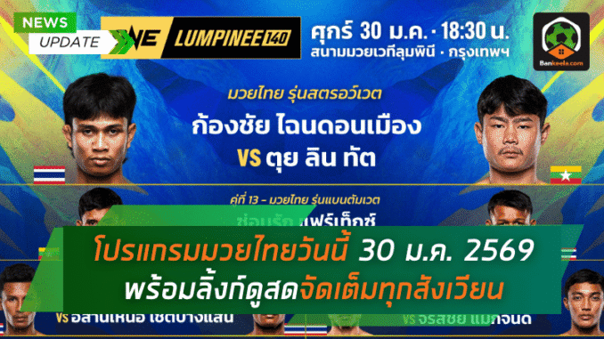 โปรแกรมมวยไทยวันนี้ 30 มกราคม 2569 เดือดทั้งคืนสำหรับคอมวยไทย