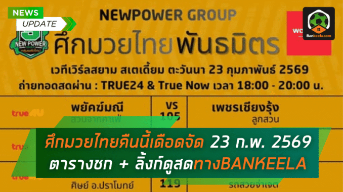 ศึกมวยไทยคืนนี้เดือดจัด 23 ก.พ. 2569 – ตารางชกครบคู่ + ลิ้งก์ดูสดทาง True4U ที่ BANKEELA