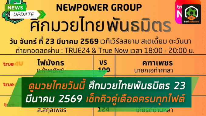 | ไฟมังกร ช.ห้าพยัคฆ์ VS คฑาเพชร นายกเอท่าศาลา | 23 มีนาคม 2569 เวลา 18.00 น. | True4U / BANKEELA |