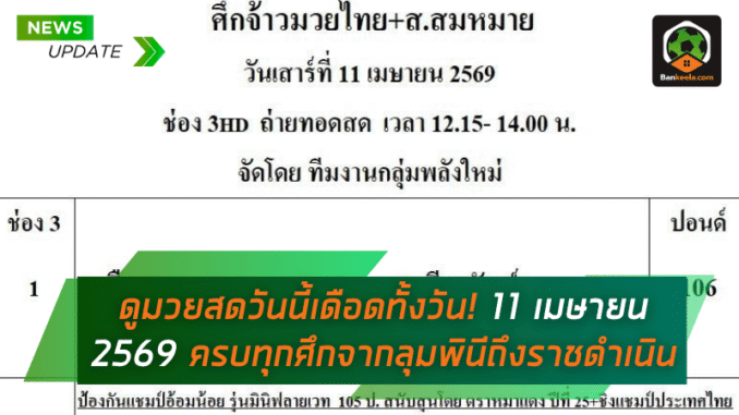 โปรแกรมมวยไทยวันนี้ วันเสาร์ที่ 11 เมษายน 2569