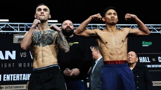 เมื่อวานที่ผ่านมา ทางฝ่ายจัดการแข่งขัน ได้ทำการชั่งน้ำหนักของทั้งสองคนเป็นที่เรียบร้อยแล้ว โดยทาง ชายน้อย ได้น้ำหนัก 121.43 ปอนด์ ส่วนทาง แซม ได้น้ำหนัก 121.83 ปอนด์ ผ่านเกณฑ์ 122 ปอนด์ ตามรุ่นซูเปอร์แบนตั้มเวต ด้วยกันทั้งคู่