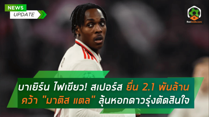 สื่อดัง สกายสปอร์ตส์ เยอรมนี รายงานว่า ท็อตแน่ม ฮ็อทสเปอร์ สามารถบรรลุข้อตกลงกับ บาเยิร์น มิวนิค ในการขอซื้อตัว มาติส แตล กองหน้าดาวรุ่งวัย 19 ปีได้เป็นที่เรียบร้อย ด้วยค่าตัวสูงถึง 60 ล้านยูโร (ประมาณ 2,100 ล้านบาท) ตามที่ “เสือใต้” ตั้งราคาเอาไว้ อย่างไรก็ตาม การย้ายทีมยังไม่เกิดขึ้นทันที เนื่องจากตัวนักเตะเองยังไม่ได้ตัดสินใจอนาคตของตัวเอง รวมถึงยังไม่มีการตกลงเงื่อนไขส่วนตัวกับทัพ “ไก่เดือยทอง”