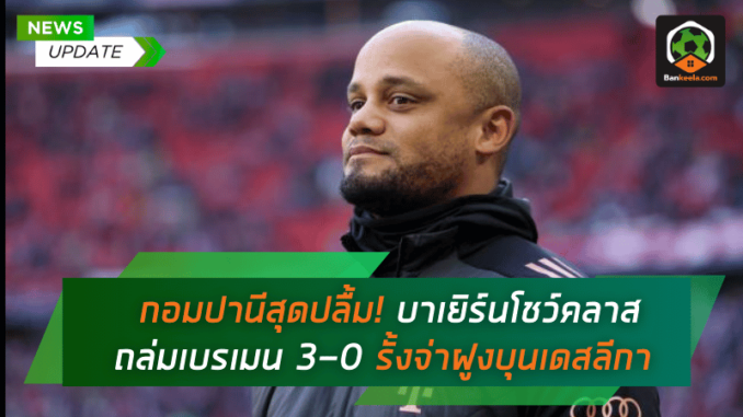 แว็งซ็องต์ กอมปานี กุนซือคนใหม่ของ บาเยิร์น มิวนิค ออกอาการปลื้มสุดขีด หลังพาทีมโชว์ฟอร์มแกร่งเปิดบ้านถล่ม แวร์เดอร์ เบรเมน 3-0 เมื่อคืนวันศุกร์ที่ผ่านมา แม้ยอมรับว่าลูกทีมยังมีปัญหาเรื่องการจบสกอร์ในครึ่งแรก แต่ก็แสดงให้เห็นถึงความนิ่งและความเป็นทีมที่เหนือกว่า