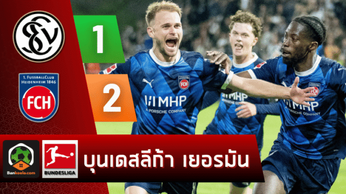 ศึกฟุตบอลเพลย์ออฟเลื่อนชั้น-ตกชั้น บุนเดสลีกา ฤดูกาล 2024/25 จบลงอย่างดุเดือด เมื่อคืนที่ผ่านมา โดย ไฮน์เดนเฮลม์ บุกไปเฉือนชนะ เอสวี เอลเวอร์เบิร์ก 2-1 พร้อมพลิกสถานการณ์ผ่านเข้ารอบด้วยผลรวมสองนัด 4-3 ท่ามกลางความดราม่าที่เล่นกันถึงช่วงทดเวลาบาดเจ็บ เรียกเสียงฮือฮาทั่ววงการ บ้านผลบอล แบบสุดระทึก