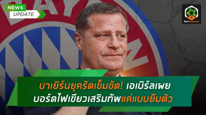 สถานการณ์ในถิ่น อัลลิอันซ์ อารีน่า กำลังถูกจับตาอย่างหนัก เมื่อ มักซ์ เอเบิร์ล บอร์ดบริหารฝ่ายกีฬาของ บาเยิร์น มิวนิค ออกมาเปิดเผยว่า ผู้บริหารระดับสูงของสโมสรได้มีคำสั่งชัดเจนว่า ทีมจะสามารถเสริมทัพได้เพียงแค่การทำสัญญา ยืมตัว นักเตะเท่านั้น ห้ามใช้เงินก้อนโตทุ่มซื้อขาดในตลาดนักเตะรอบนี้