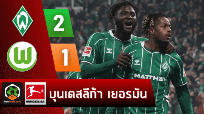 และในช่วงทดเวลาบาดเจ็บนาทีที่ 90+4 ดราม่ามาเต็ม เมื่อ ซามูเอล เอ็มบังกูล่า ตัวสำรองที่เพิ่งลงมาได้บอลจาก โอกอน โบนิแฟซ ก่อนซัดเสียบเสาให้เบรเมนพลิกนำ 2-1 แบบสุดมันส์ จบเกม เบรเมนเฉือนโวล์ฟสบวร์ก ไปอย่างสะใจแฟนเจ้าถิ่น