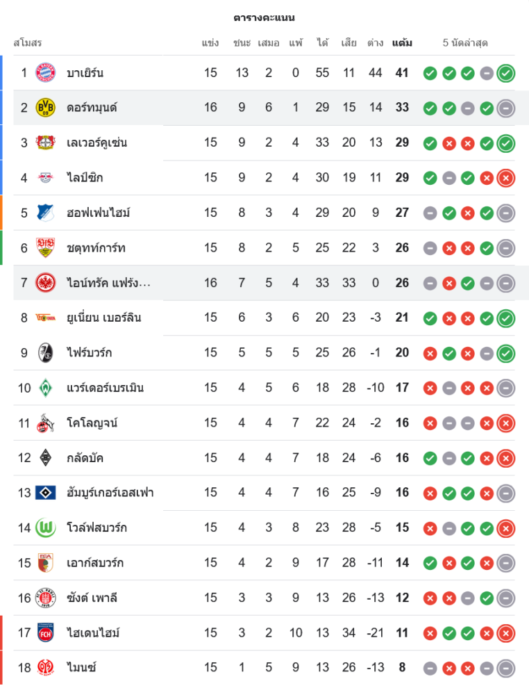 🏆 สถานการณ์ในตารางคะแนนบุนเดสลีกา