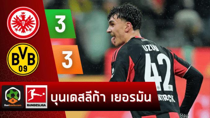 ศึกฟุตบอล บุนเดสลีกา ที่ดอยซ์แบงก์ พาร์ค กลายเป็นหนึ่งในเกมมันส์ประจำสัปดาห์ เมื่อไอน์ทรัค แฟรงก์เฟิร์ต เปิดบ้านเสมอ โบรุสเซีย ดอร์ทมุนด์ แบบสุดเดือด 3-3 เกมนี้บอลไหลไปมาทั้งสองฝั่ง สกอร์พลิกถึงสามรอบ และต้องรอถึงช่วงทดเจ็บถึงรู้ผล แฟนบอลที่ตามเช็ก ผลบอลสด อยู่มีหัวใจหล่นไปกองกับพื้นแน่นอน