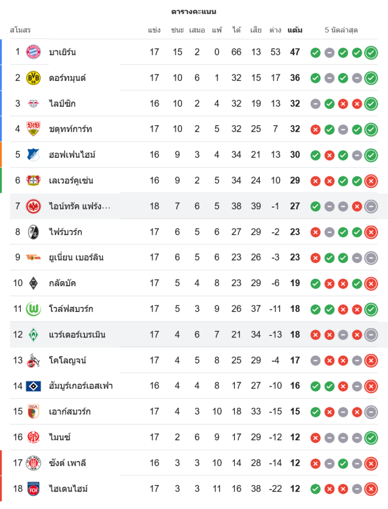 📌 สถานการณ์ในตารางคะแนนบุนเดสลีกา