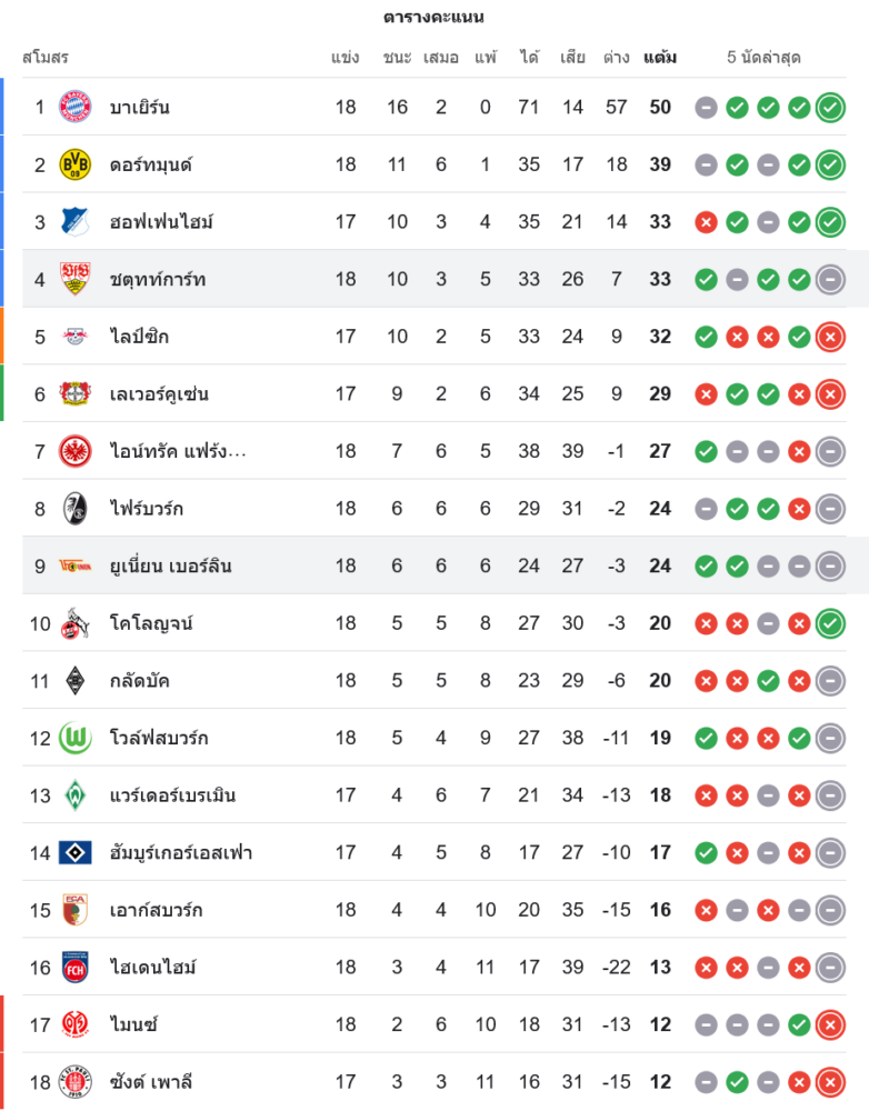 🪜 สถานการณ์ในตารางคะแนนบุนเดสลีกา