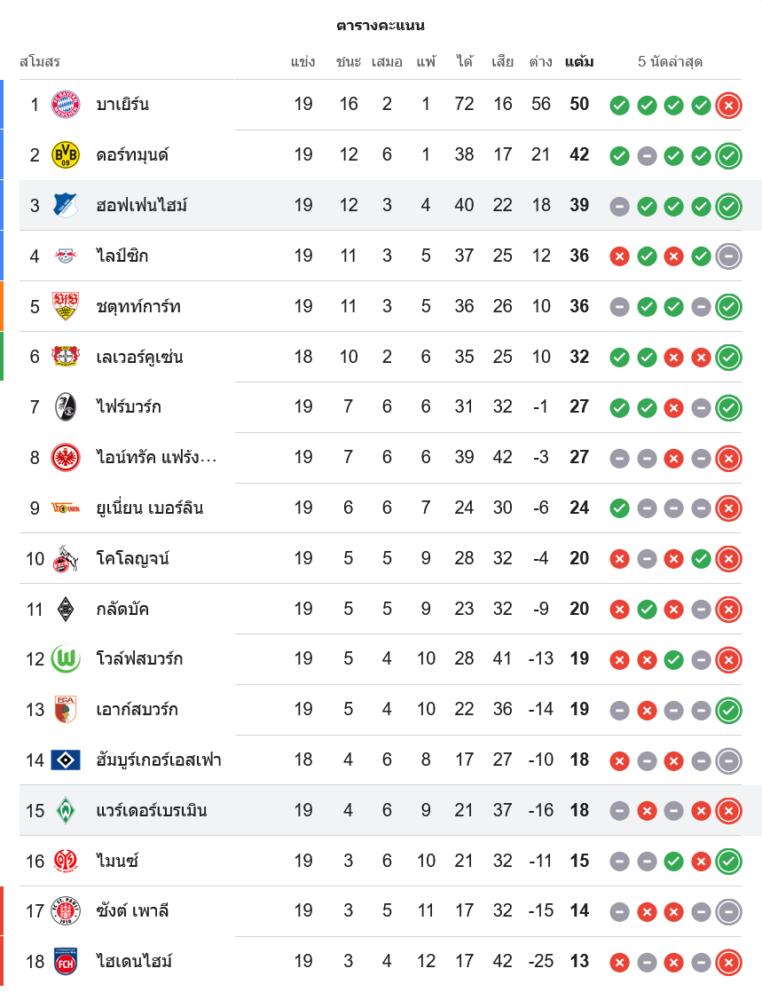 📌 สถานการณ์ในตารางคะแนนบุนเดสลีกา