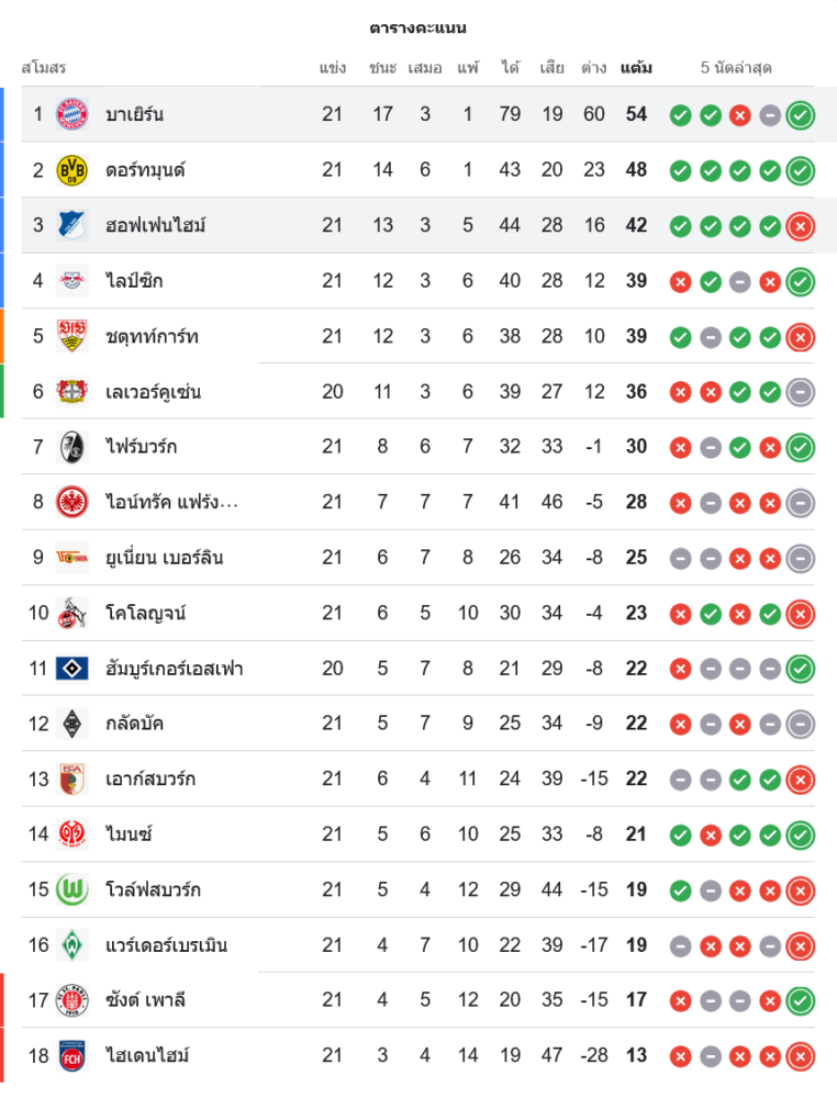 📌 สถานการณ์ในตารางคะแนนบุนเดสลีกา
