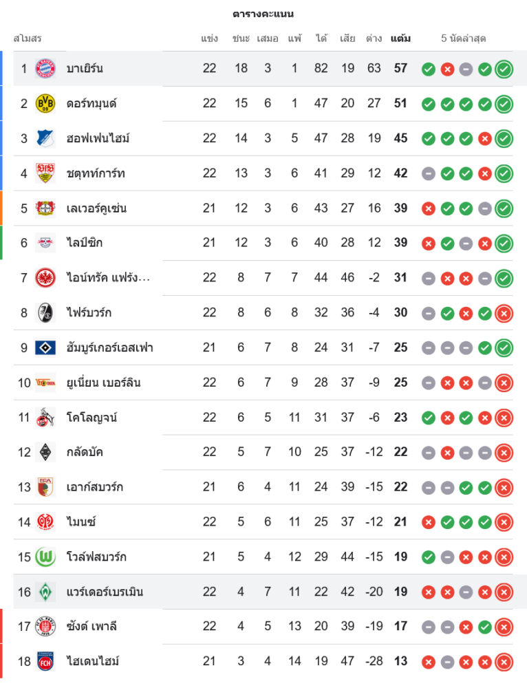 📊 สถานการณ์ในตารางคะแนนบุนเดสลีกา