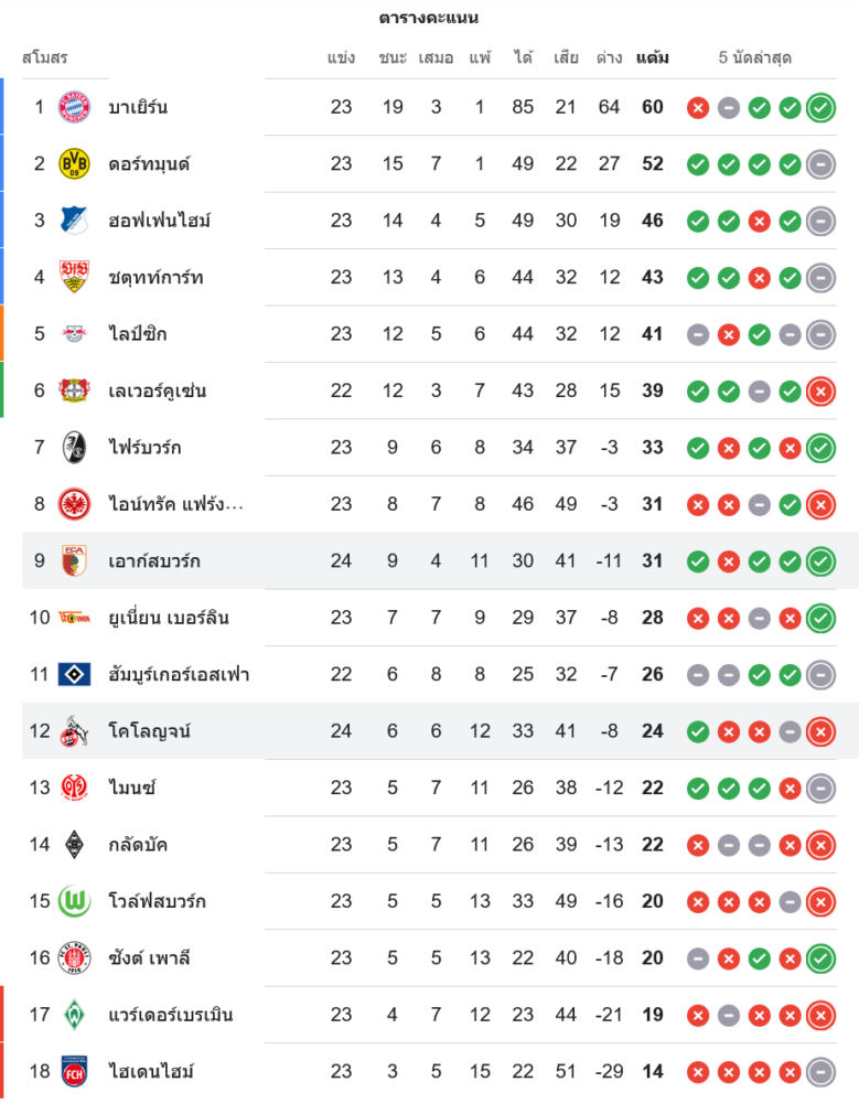 สถานการณ์ในตารางคะแนนบุนเดสลีกา