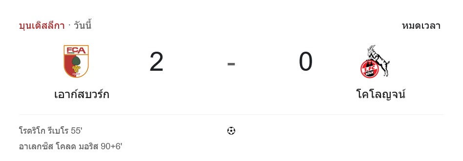 ชัยชนะนัดนี้ทำให้เอาก์สบวร์กเก็บเพิ่มเป็น 31 คะแนนจาก 24 นัด รั้งอันดับ 9 และยังเกาะกลุ่มกลางตารางที่มีลุ้นขยับได้ต่อเนื่อง ส่วนโคโลญจน์แพ้แล้วหยุดที่ 24 คะแนนจาก 24 นัด อยู่แถวอันดับ 12 สถานการณ์อาจยังไม่ถึงขั้นวิกฤต แต่ถ้ายัง “ครองบอลเก่งแต่ยิงไม่เข้า” แบบนี้ แต้มจะค่อย ๆ หายไปแบบไม่รู้ตัว