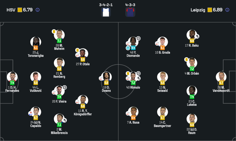 บ้านกีฬาให้เครดิตเต็มๆ กับ ยาน ดิออม็องด์ เรตติ้ง 8.4 เกมนี้เขาไม่ใช่แค่ยิงประตูชัยนาที 50 แต่ยังเป็นตัวสร้างปัญหาให้แนวรับฮัมบูร์กตลอด ทั้งการพาบอลเข้าเขตโทษ การหาพื้นที่ระหว่างไลน์ และการตัดสินใจจังหวะสุดท้ายที่เฉียบขาด พอไลป์ซิกต้องถอยปิดเกมช่วงท้าย เขายังช่วยไล่เพรสให้ทีมไม่เสียทรงง่ายๆ