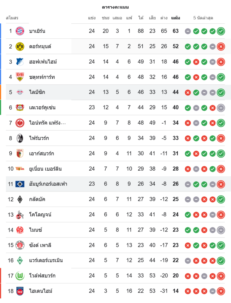 สถานการณ์ในตารางคะแนนบุนเดสลีกา