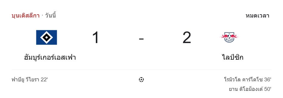 จาก : ผลบอลสด บุนเดสลีกา ระหว่าง ฮัมบูร์ก 1-2 แอร์เบ ไลป์ซิก วันนี้ 2/3/69 – บ้านกีฬา