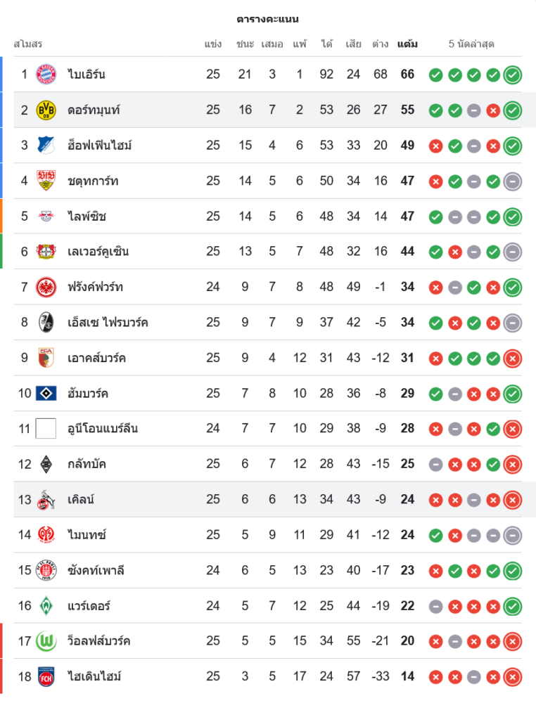 สถานการณ์ในตารางคะแนนบุนเดสลีกา