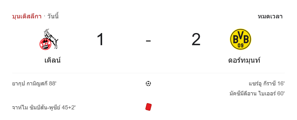 จาก : ผลบอลสด บุนเดสลีกา ระหว่าง โคโลญจน์ 1-2 โบรุสเซีย ดอร์ทมุนด์ วันนี้ 8/3/69 – บ้านกีฬา