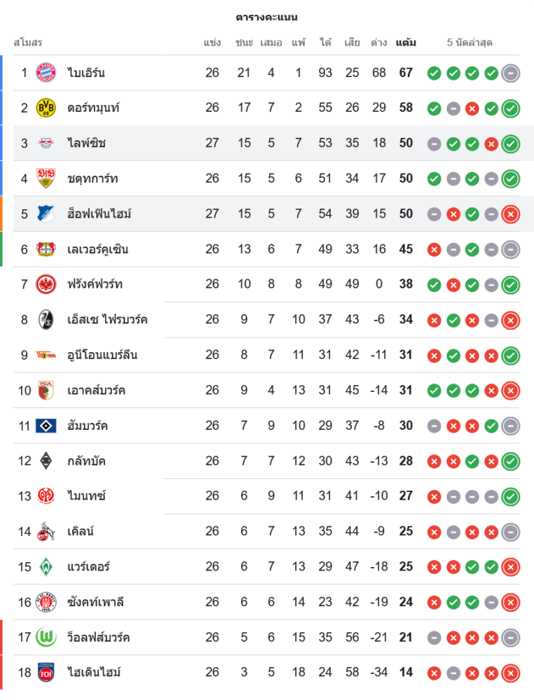 สถานการณ์ในตารางคะแนนบุนเดสลีกา