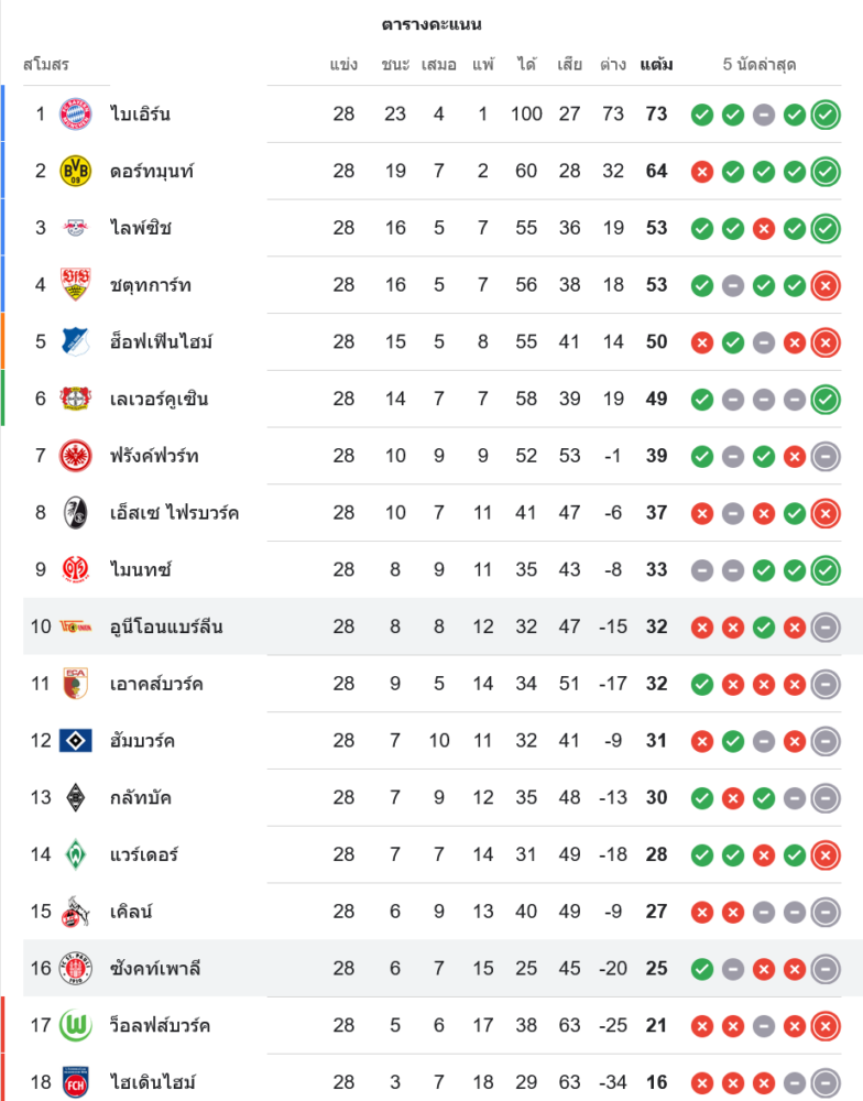 สถานการณ์ในตารางคะแนนบุนเดสลีกา