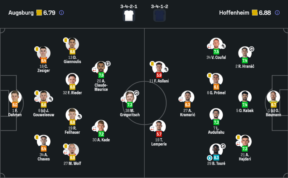 ตัวรุกฮอฟเฟ่นไฮม์คือคนที่เปลี่ยนเกมอย่างแท้จริง เขายิงประตูตีเสมอ 2-2 และสร้างความปั่นป่วนให้แนวรับเอาก์สบวร์กตลอดทั้งเกม การเคลื่อนที่และความกล้าเล่นในพื้นที่สุดท้ายของเขาทำให้ฮอฟเฟ่นไฮม์กลับมาอยู่ในเกมอีกครั้งแบบเต็มตัว