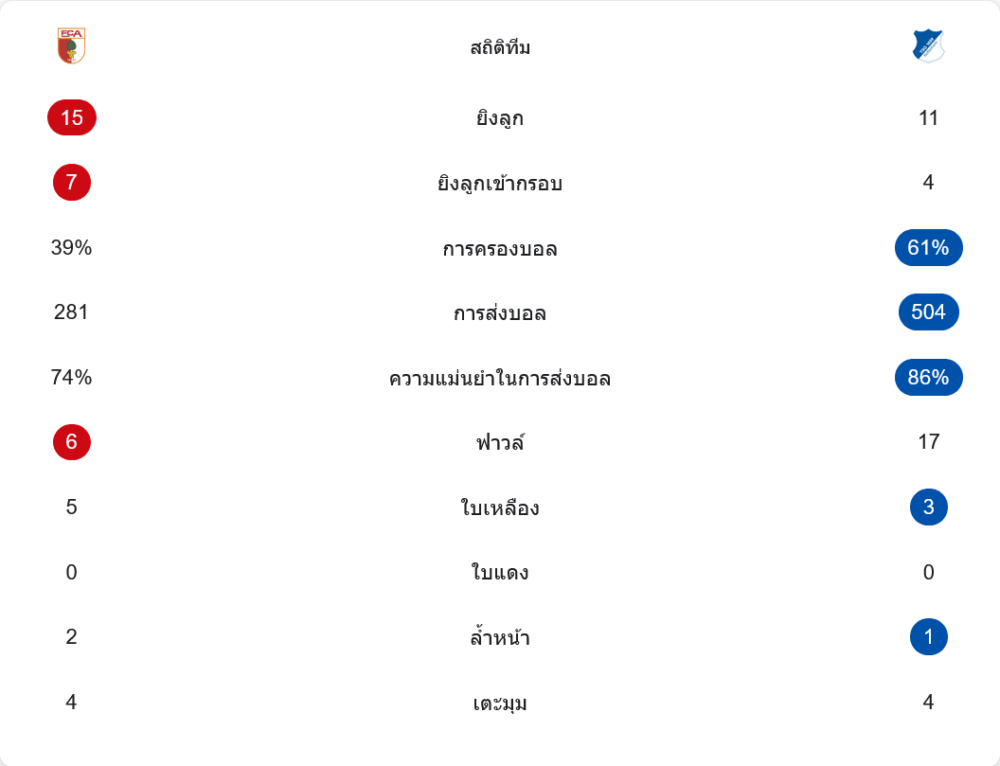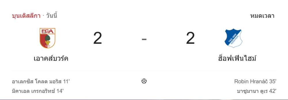 - 🏁 หมดเวลา เอาก์สบวร์ก 2-2 ฮอฟเฟ่นไฮม์